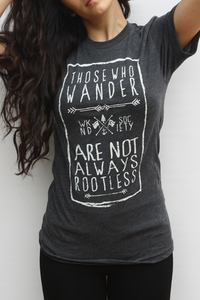 Those who wander... This ultra-soft, ultra comfy unisex t-shirt feels like you've owned it for years the moment you put it on, and for many adventures to come. Design visible and invisible in certain lighting conditions.